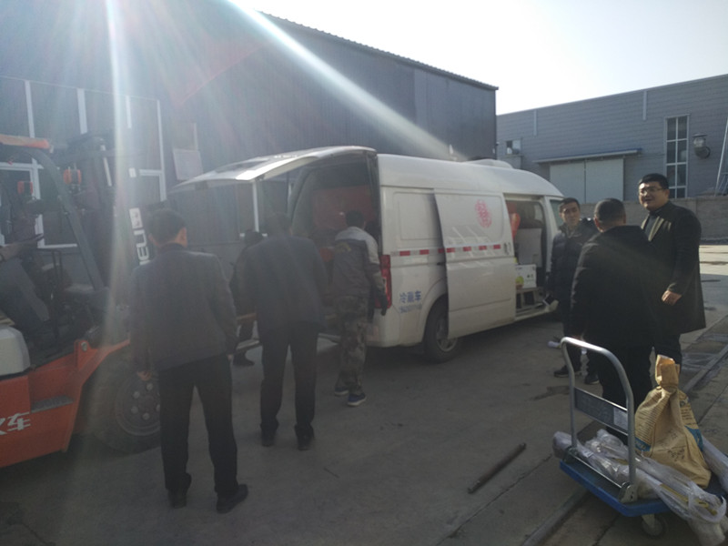 今天上午9點多,蔡總他們開著其合作社的冷藏車又來到了河北保東廠區(qū)。由于冷藏車空間有限,雙方約定現(xiàn)場提走3臺開溝施肥回填機,另外2臺隨后發(fā)物流。