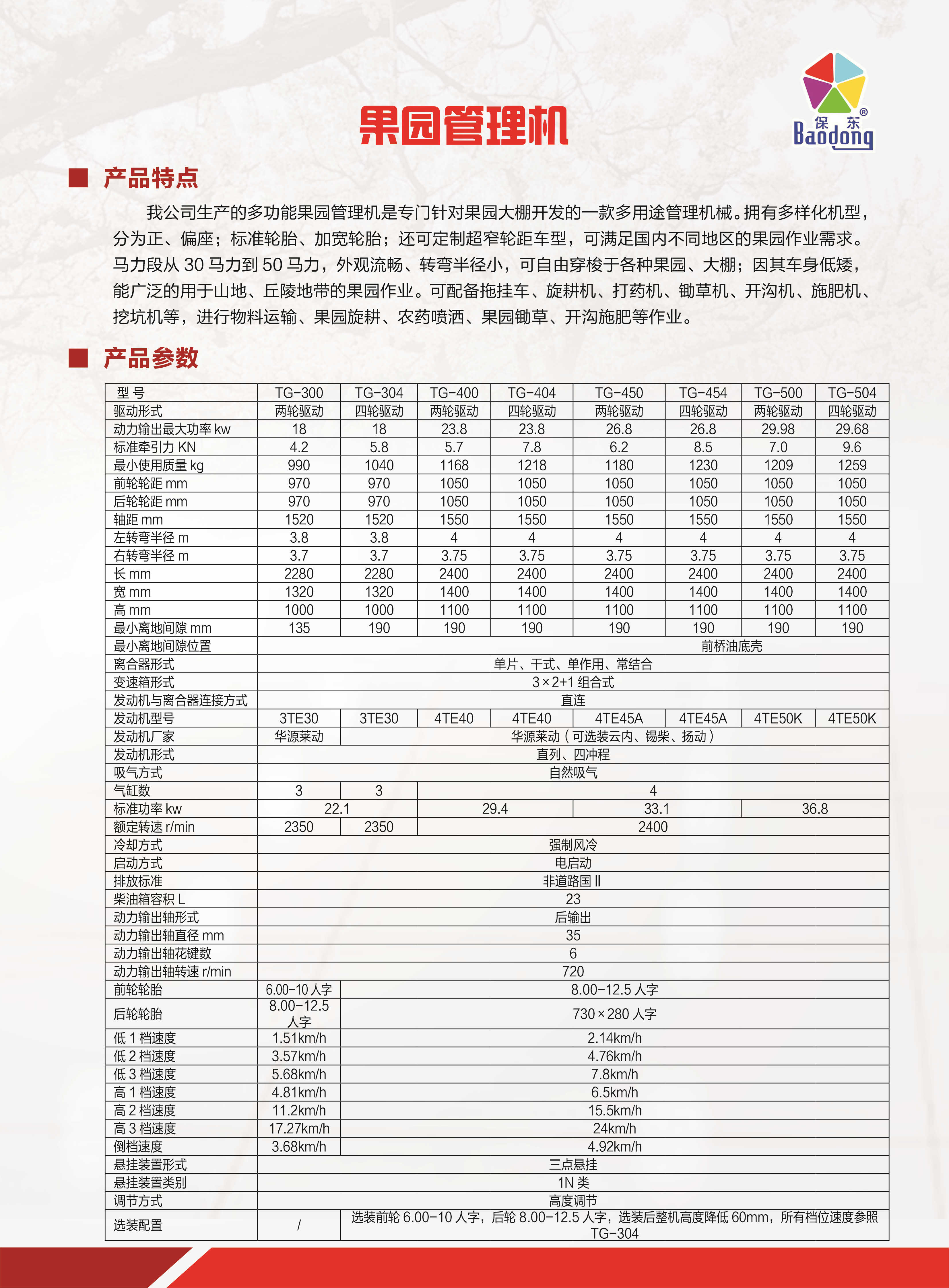 該機(jī)型經(jīng)優(yōu)化設(shè)計(jì),充分加強(qiáng)拖拉機(jī)的農(nóng)藝性能、技術(shù)經(jīng)濟(jì)性和安全舒適性。整機(jī)設(shè)計(jì)合理,拖拉機(jī)綜合性能優(yōu)越,適應(yīng)性強(qiáng),利用率高,可滿足果園、平原、丘陵、山區(qū)、牧區(qū)、菜園等機(jī)械化要求,廣泛應(yīng)用于各種田間作業(yè)(耕地、耙地、旋耕、播種、打藥、開溝、田間管理等)。