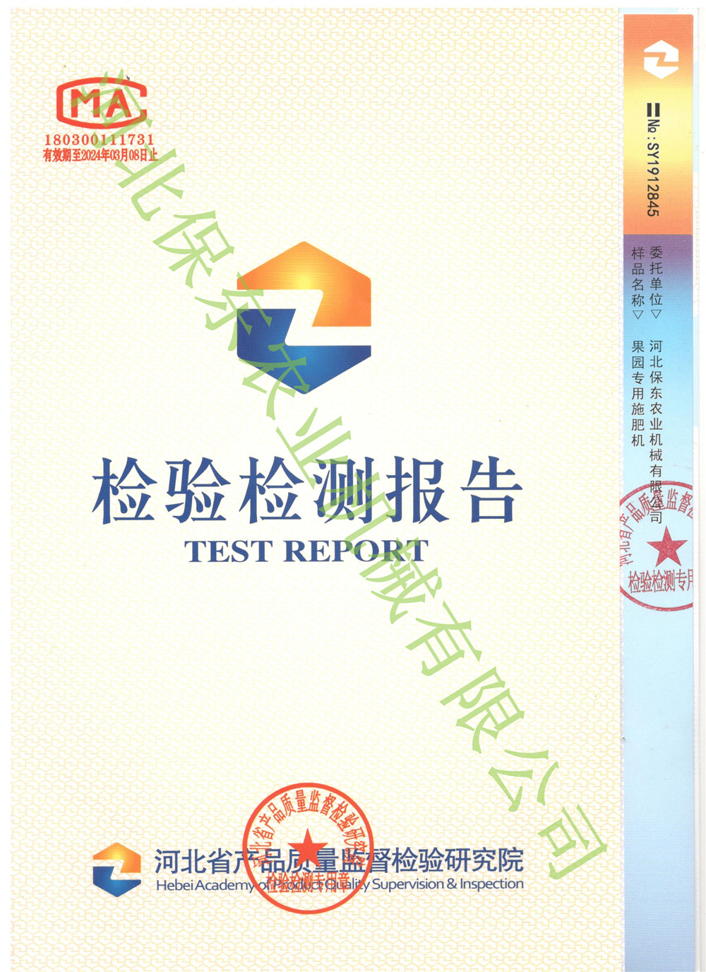 • 果園施肥機(jī)檢驗(yàn)報(bào)告